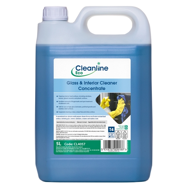Cleanline Eco Glass & Interior Cleaner Concentrate is is a non-abrasive multi-purpose cleaner for use on water-resistant hard surfaces, including glass, mirrors, laminates, ceramics and stainless steel