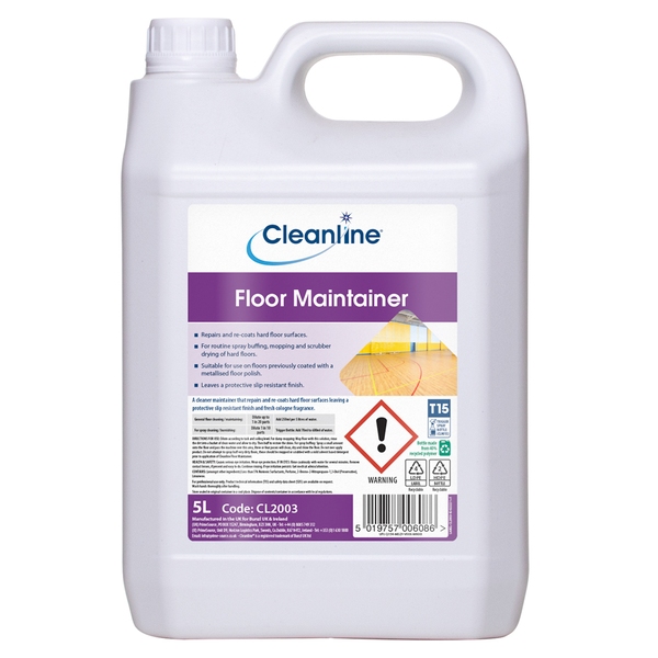 Cleanline Floor Maintainer will repair and re-coat hard floor surfaces leaving a protective slip-resistant finish and fresh cologne fragrance.