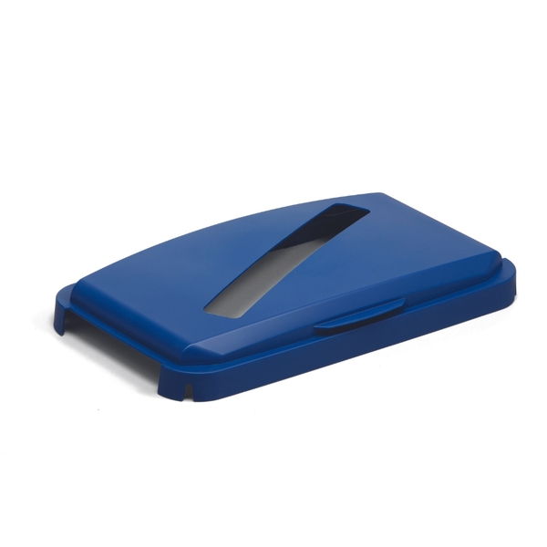 Rectangular frame with hinged lid with a slot cut-out for the disposal of paper or cardboard. The lid is easy to attach to all DURABIN 60 bins with a clip-on hinge. Perfect for making recycling easy in the workplace or at home