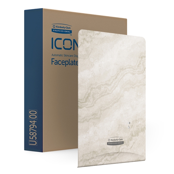 The Kimberly-Clark Professional ICON dispensing system is our newest industry-leading innovation, delivering confidence by design. Featuring first-of-a-kind versatility, the ICON dispenser effortlessly enhances the look of the washroom with an exclusive line of interchangeable faceplates to help reimagine the washroom. Reimagine the look and feel of your washroom with the ICON dispensers quick and easy faceplate swap. Designed to take minimal effort, changing the faceplate is literally a snap in a few steps. Choose from six interchangeable faceplates offering a unique selection of 3 natural accents (warm marble, cherry blossom and a deep, authentic, ebony woodgrain) and 3 contemporary classics that offer a practical, yet modern, take on traditional designs. Bring adaptable style and sophistication into the washroom with the Kimberly-Clark Professional ICON collection for paper towel, skin care, and toilet paper dispensing systems. 1 x Faceplate, Warm Marble Design, for Automatic Soap and Sanitiser Dispenser