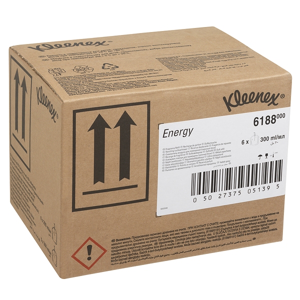The quality and care you expect from the Kleenex Brand, now in a harmonised range of aircare fragrances for an uplifting washroom experience. Designed to elevate your washroom with a distinctive aircare fragrance with carefully selected citrus fruit and herbal notes that effectively neutralise malodour. Kleenex Botanics Aircare Energy Refills perfectly compliment and harmonise with our Kleenex Botanics Energy Luxury Foam Hand Cleanser. Our reformulated fragrances are manufactured using compressed oil technology, for consistent fragrance intensity with much lower residue. Compatible with Aquarius Aircare Dispenser (code 6994). A specially designed valve delivery system ensures a finer spray dispersal, with each refill lasting up to 90 days of frequent use. This aerosol-free technology creates lower VOCs compared to standard aerosol systems. Classified as Non Dangerous Goods. Also available in Joy and Fresh fragrances, designed for an uplifting and tailored washroom experience. 6 x Energy Fragrance Aircare Refill Pouches, 300ml (1,800ml total)
