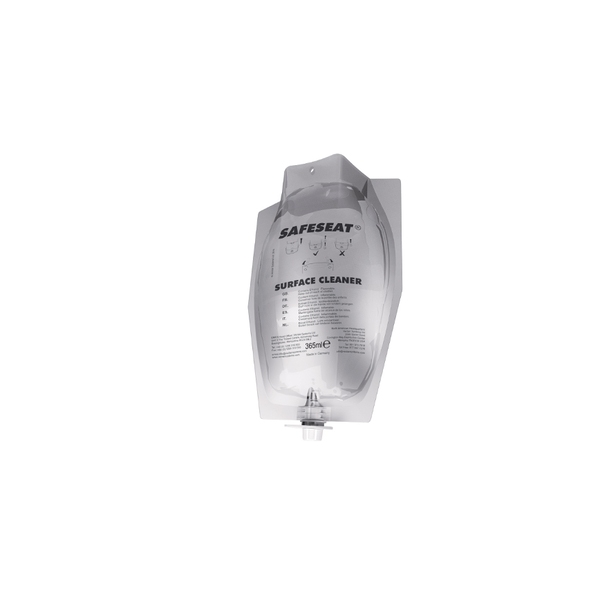 Even seemingly clean surfaces can harbour vast numbers of harmful bacteria. Easy to use Safeseat Surface Cleaner provides the individual with the opportunity to clean surfaces such as toilet seats effectively before and after use.Safeseat chemical is ultra quick drying and effective against all harmful bacteria commonly found on and around toilet fixtures. Patented “sealed until installed” pouches ensure installation of refills is quick, simple and contamination free.Each pouch holds a high capacity of up to 3000 measured shots, meaning Safeseat is ideal for the busier location.