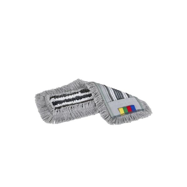 Vileda Professional r-Trio Max Pocket Mop is a single sided mop made from 35% recycled material & has a unique 4 line cleaning zone to deliver outstanding results. The powerful scrubbing zone tackles trapped dirt, the microfibre zone excels at deep cleaning, while the absorbent outer zones gather spills and debris, all complemented by the low friction center zone that ensures effortless gliding. 99.99% bacteria & virus removal. Long lasting; up to 500 washes.