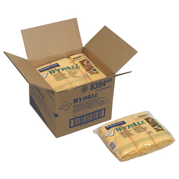 WypAll® Microfibre Cloths are able to absorb up to 8 times their weight in liquid and are the perfect reusable product for cleaning. With a lifespan of up to 300 washes, the cloths create a more cost efficient choice for busy cleaning professionals. The cloths microfibre lifts and traps dirt and moisture leaving surfaces clean, dry and polished to make cleaning less time consuming, compared with cotton cloths that only push dirt and moisture around. No wonder WypAll® microfibre cloths are the cleaning product of choice for cleaning professionals who demand the most efficient product possible. Individual sheet size 40cm (L) x 40cm (W). 4 carry packs x 6 cloths, yellow (24 total)